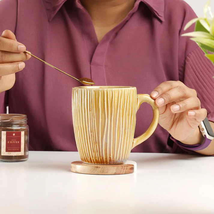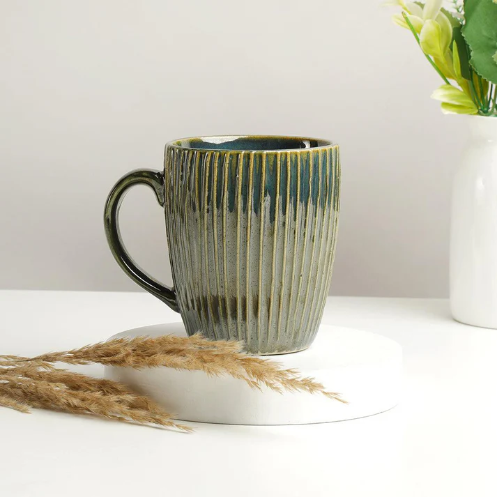 Add a bit of texture to your morning tea or evening coffee with this ceramic mug that comes with a vertical texture on the surface. The texture on the body elevates this otherwise everyday looking mug into something special.