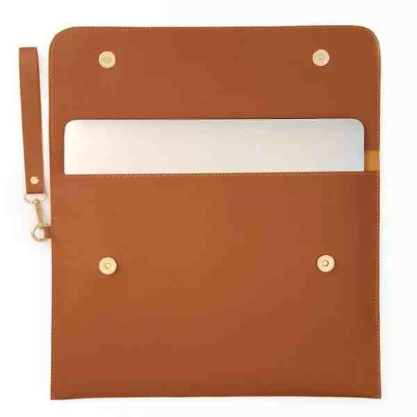 A magnetic button keeps your laptop safe inside, but it’s also quick to open when you need it. There’s plenty of space for your laptop, and it can also hold your tablet or e-reader. It comes in two sizes to fit different laptops (13-inch and 15-inch).