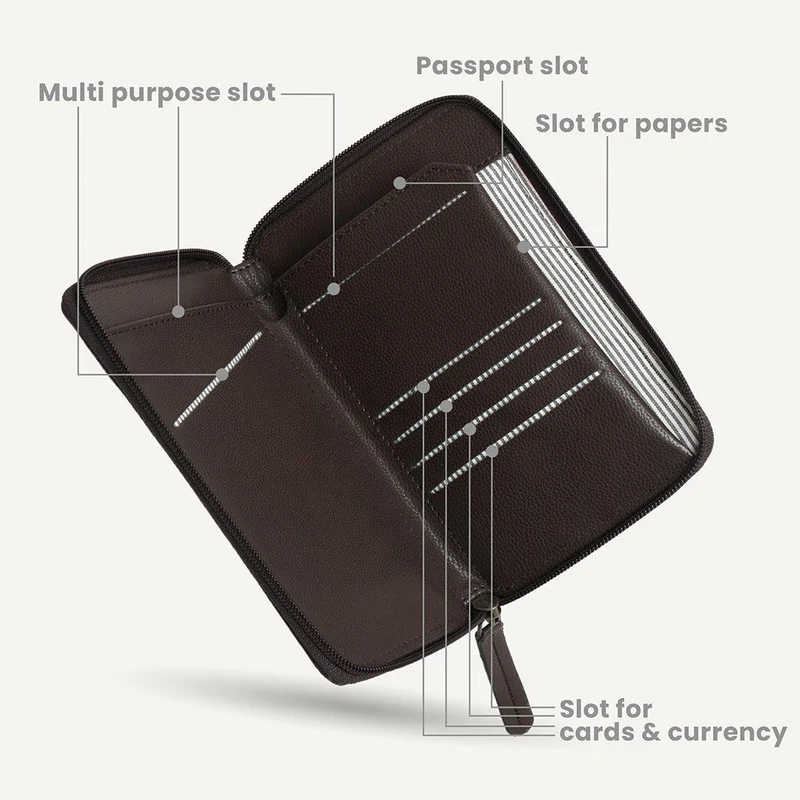 5. In the instance of unavailability of any product, it will be substituted with a product close to the original item, without compromising on quality.This sleek and roomy organizer made from faux leather is all one needs on their next travel. The organizer can easily house a passport, currency notes, credit/debit cards and is secured with a zip all around.