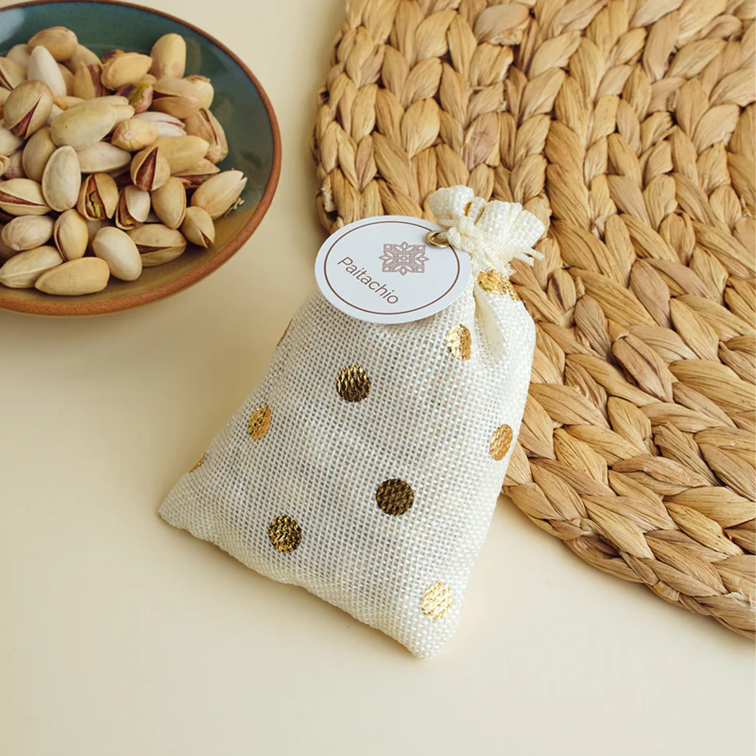 Premium pistachios packed in a beautifully designed potli bag. A blend of tradition and taste, ideal for festive gifting.