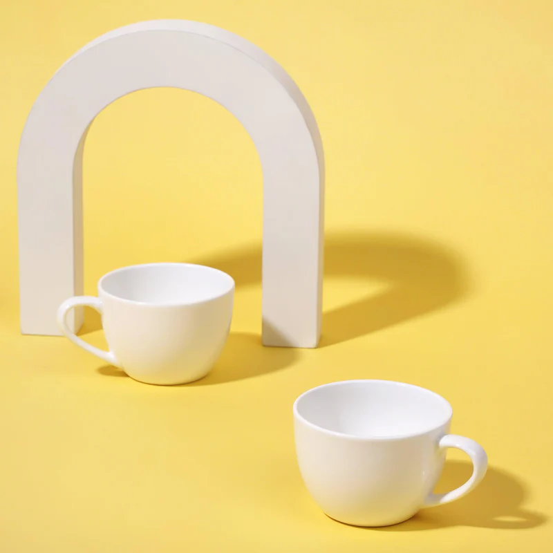 A set of two classic white porcelain cups for your perfect cup of chai at home! The cups are elegant and a handy size, fits comfortably and ergonomically in the palm of your hands.