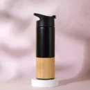 A fusion of visual elements on the body gives this water bottle a striking visual appeal. The upper metal body gives it a sharp look, while the bamboo in the bottom makes the bottle feel warm. The handy loop on the cap makes it convenient to carry around.