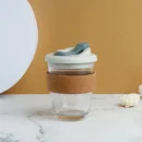 This compact water sipper is made of glass with a cork sleeve and sipper cap. It is easy to carry, sleek and perfect for everyday use.