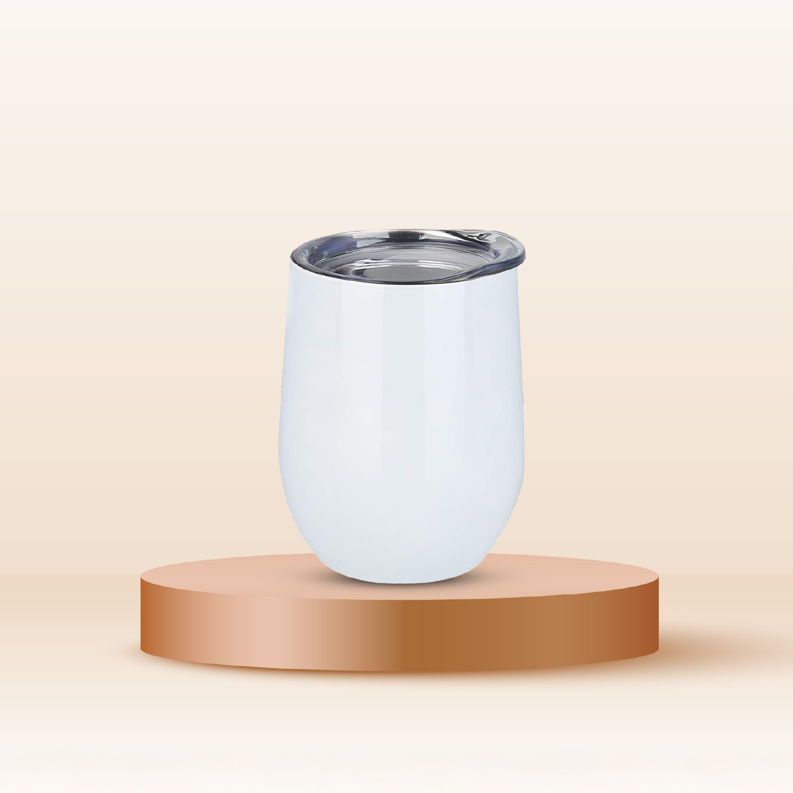 A sleek white stainless steel tumbler with a clear, spill-resistant lid. Designed for both hot and cold beverages, this tumbler combines style and practicality. Ideal as a sustainable and premium corporate gifting option for employees, clients, and business partners.