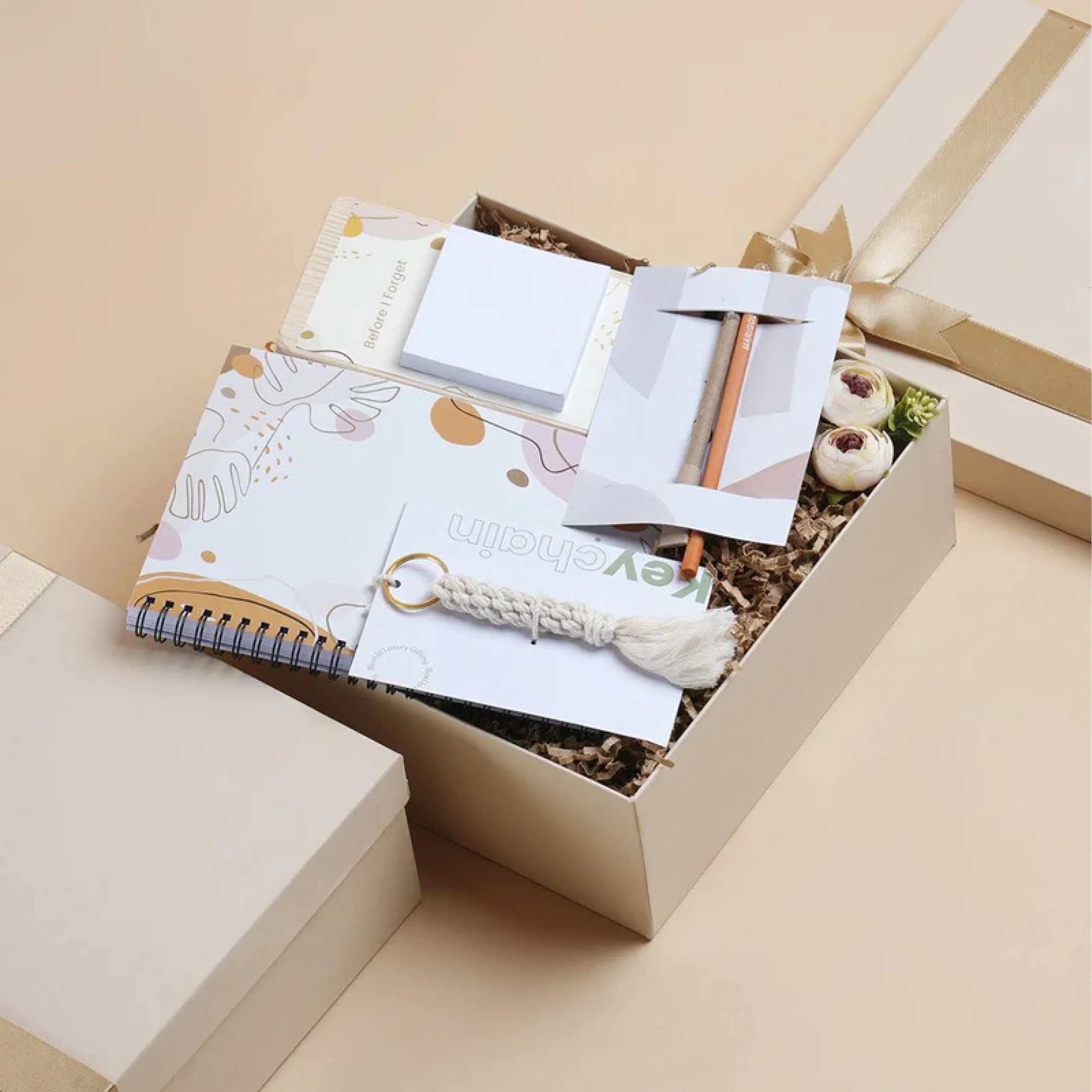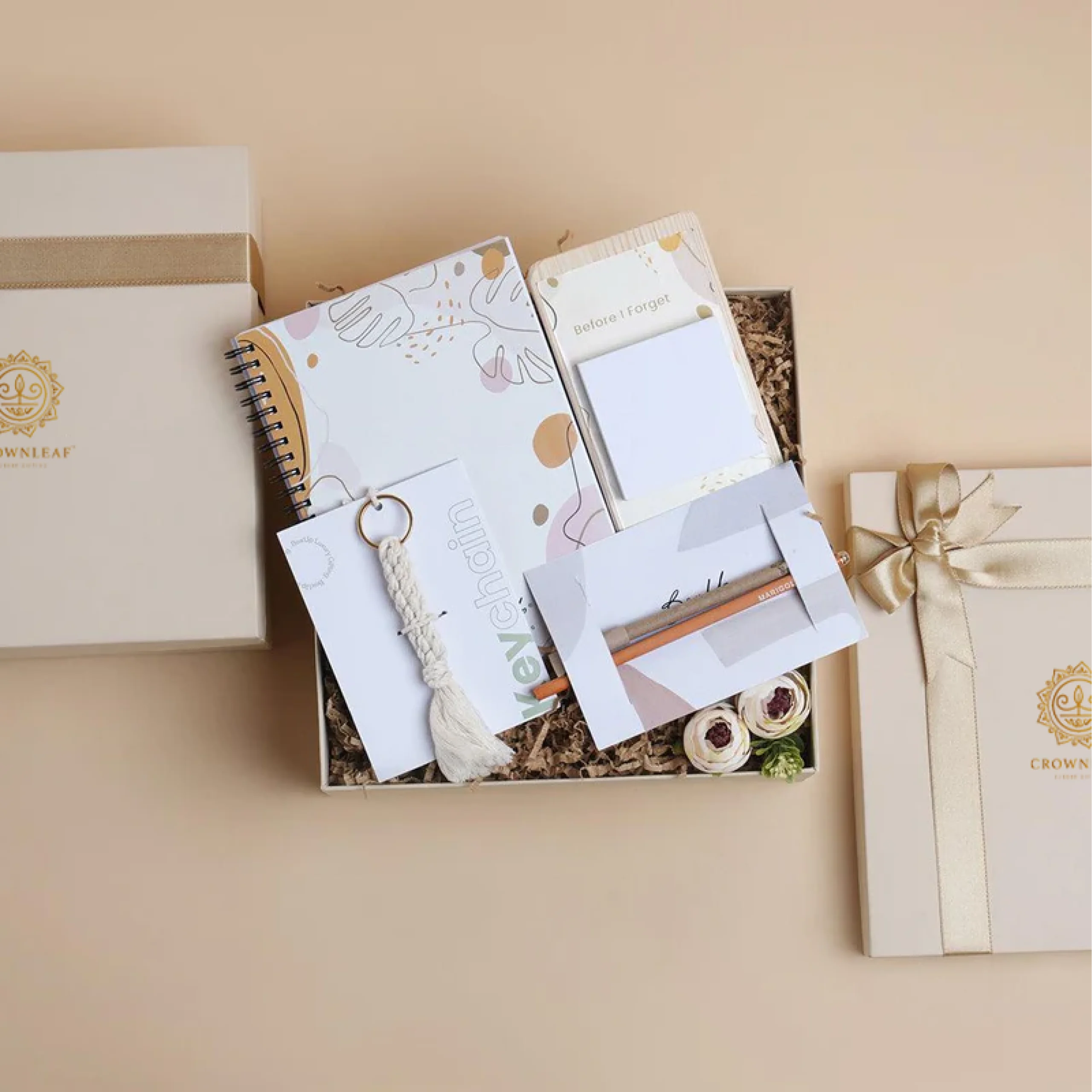 This hamper is carefully curated for someone who takes notes of everything in their life. A spiral-bound notebook with unruled, unmarked pages gives one the freedom to write, journal, scribble, or sketch as one wishes. The magnetic Post-it board can be mounted to any metal surface for easy access to quick notes. The hamper comes with a plant-able seed tip pen and pencil – simply plant them once you are done using it and you will have your very own mini garden! The last item in the hamper is a macrame keychain, perfect to hold all your keys together.